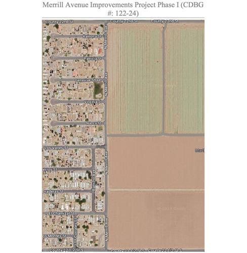 El Departamento de Vivienda de Arizona otorgó a la ciudad una subvención de Desarrollo Comunitario (CDBG) de su cuenta regional, por un monto de $466,638.00, destinada a la primera fase de las mejoras en la Avenida Merrill. El proyecto abarca desde la remoción de 4,299 yardas cuadradas de asfalto hasta la instalación de 9,286 pies cuadrados de acera y 1,096 pies cuadrados de rampas para aceras. Además, se colocarán 8,854 yardas cuadradas de nuevo asfalto y se incluirá la señalización y el marcado vial necesarios.