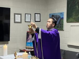 A las 9:00 de la mañana, ante la presencia de miembros de la comunidad y antiguos chavistas, el padre Luis Pablo Ochoa, de la Parroquia de la Inmaculada Concepción de Yuma, presidió la celebración eucarística.