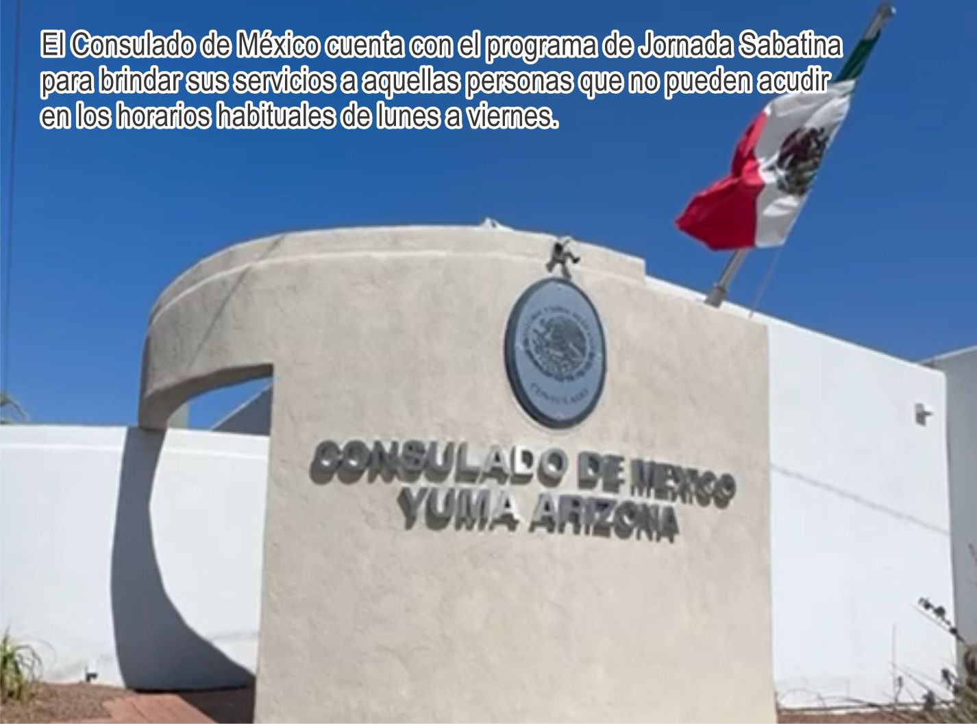 El Consulado de México en Yuma llevará a cabo una Jornada Sabatina este sábado 12 de julio, en sus instalaciones ubicadas en el 301 S 2nd Ave., en un horario de 8:00 de la mañana a 1:00 de la tarde.