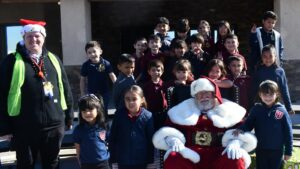 Durante su visita, Santa Claus no solo trajo alegría y espíritu navideño, sino que también alentó a los estudiantes a sumarse a la campaña de recolección de latas de alimentos, destinada a apoyar a las familias y estudiantes más necesitados de la comunidad educativa. Este esfuerzo solidario busca fomentar la empatía y el compromiso social entre los alumnos.