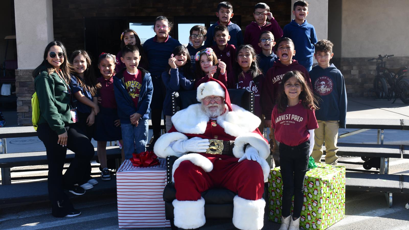 El pasado 6 de diciembre, los estudiantes de Harvest Preparatory Academy, tanto en el campus de San Luis como en el de Yuma, recibieron una visita especial: Santa Claus hizo un espacio en su apretada agenda navideña para compartir un momento mágico con los niños y jóvenes de la institución.